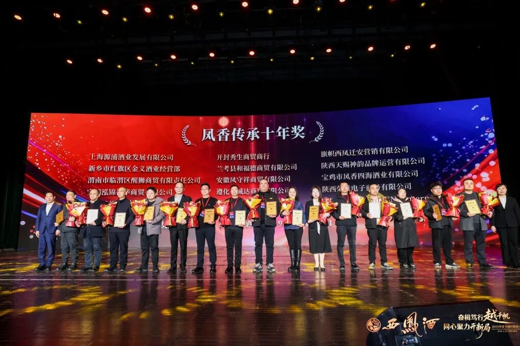 会上公布了《关于对2025年度优秀经销商、供应商进行表彰奖励的决定》。与会领导分别为荣获重大贡献奖、战略合作功勋奖、突出贡献奖、明星经销商、凤香传承奖、国际市场开拓奖、终端网点建设奖、年度互联网优秀合作伙伴、优秀供应商等奖项的经销商代表颁奖。
