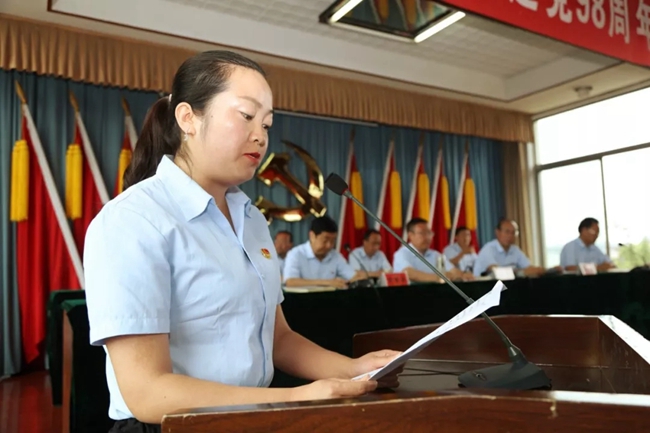 先进基层党组织代表营销公司党(总)支部书记刘国栋;党风廉政建设先进单位代表903车间党支部书记金成勇;优秀共产党员代表监察审计部员工杜亚玲;预备党员代表动力车间员工高晓阳分别作了表态发言。