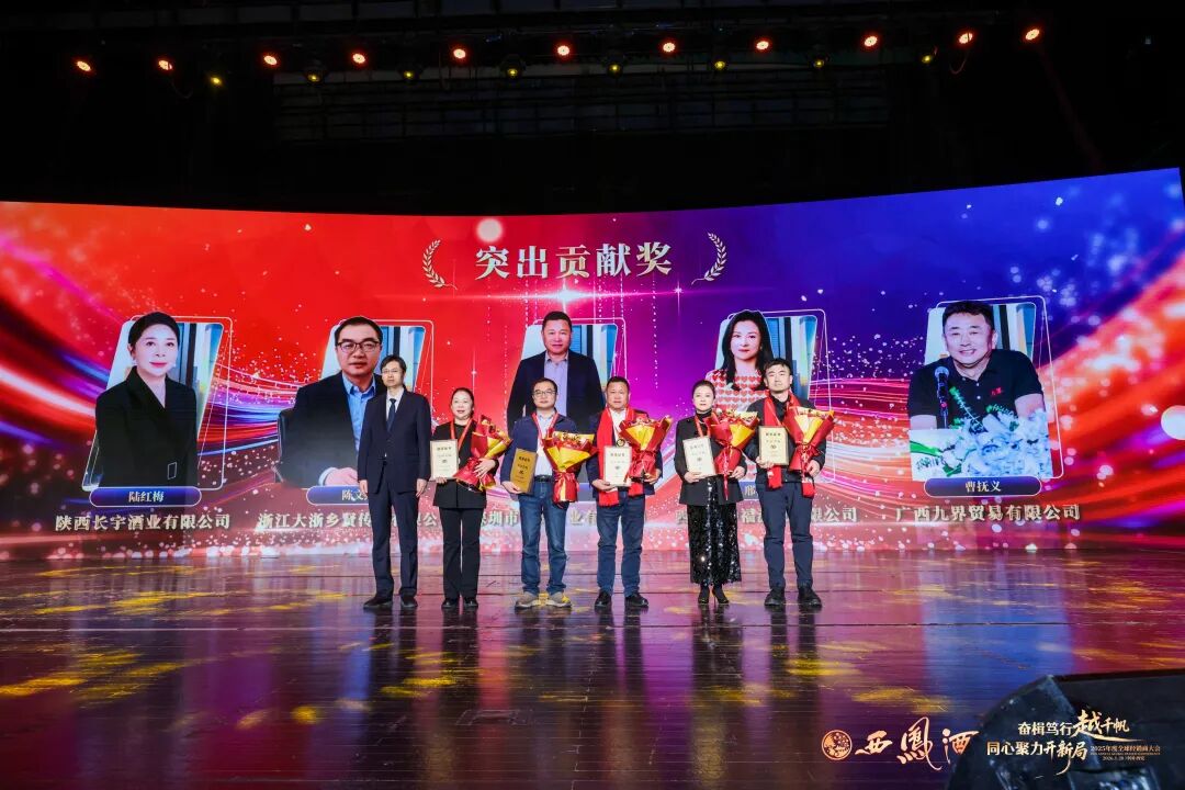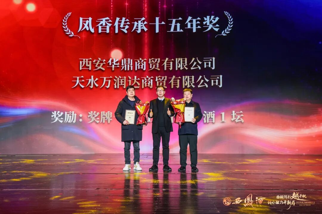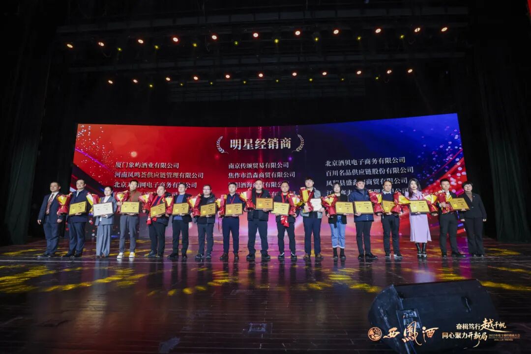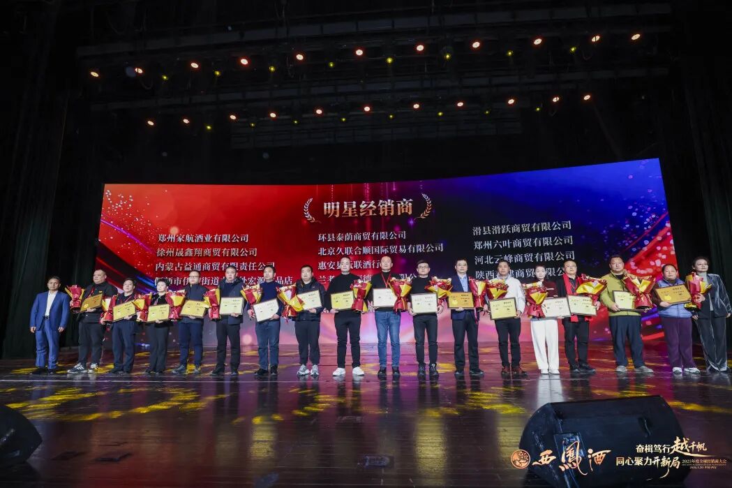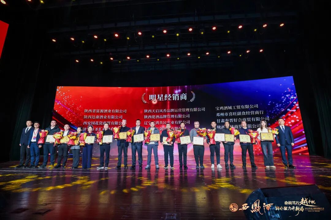 会上公布了《关于对2025年度优秀经销商、供应商进行表彰奖励的决定》。与会领导分别为荣获重大贡献奖、战略合作功勋奖、突出贡献奖、明星经销商、凤香传承奖、国际市场开拓奖、终端网点建设奖、年度互联网优秀合作伙伴、优秀供应商等奖项的经销商代表颁奖。